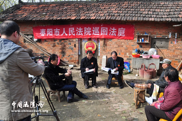 据了解,今年来,枣阳法院深入开展党的群众路线主题实践活动,在46个村组设立了46个巡回审判点,对当事人因行动不便、地处偏远的案件,主动把法庭搬到农家院落、田间地头,让群众不出村子甚至不出家门就能解决诉讼难的问题。通过就地开庭、现场调解、法律咨询等方式推进巡回办案,用真诚的心感动当地群众,化解了一个又一个矛盾纠纷。