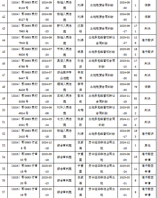 枣阳市人民法院2025年一审土地纠纷案件明细表