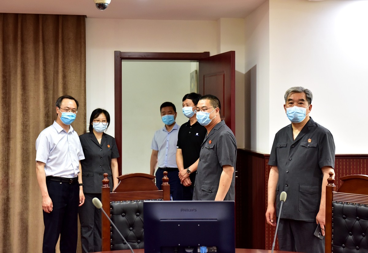 邹磊院长先后视察了吴店人民法庭、枣阳法院诉讼服务中心、诉前调解工作室等场所,并在枣阳法院召开座谈会。