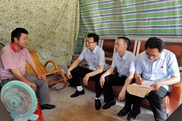 7月1日下午,烈日炎炎,湖北省枣阳市法院院长周俊庆等一行驱车20余公里,到七方镇主动回访了市人大代表、全国农民十大科技致富能手饶玉强,对其反映的个案问题,面对面进行了答疑、解释,并对当前司法工作中的一些热点问题做了深入交流。饶代表对法院领导虚心听取意见,“零距离”进行沟通,感到非常满意。